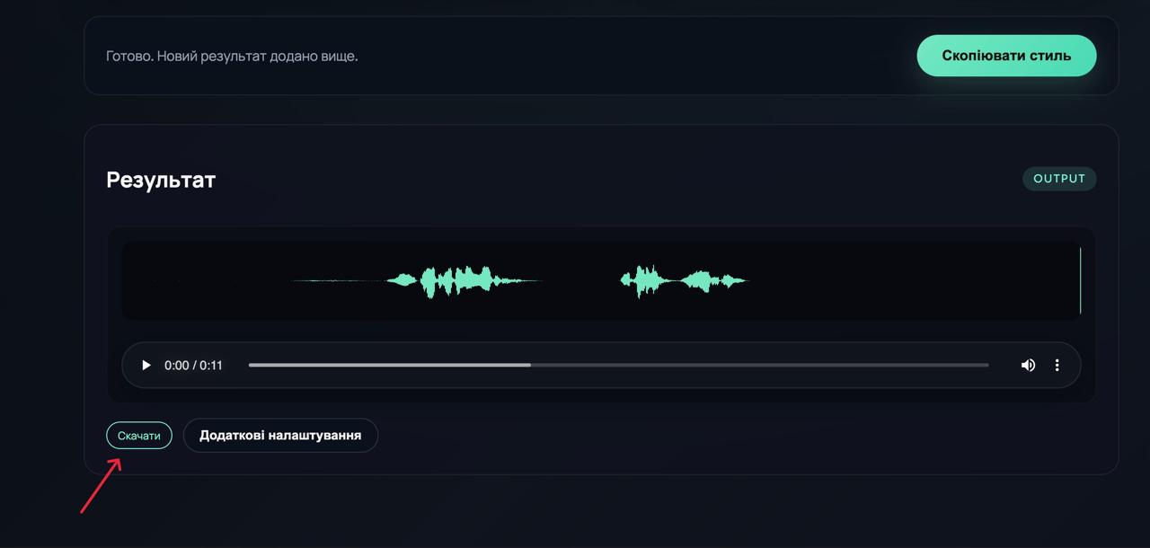 Після цього референсне аудіо потрібно завантажити у поле «Референс стилю».