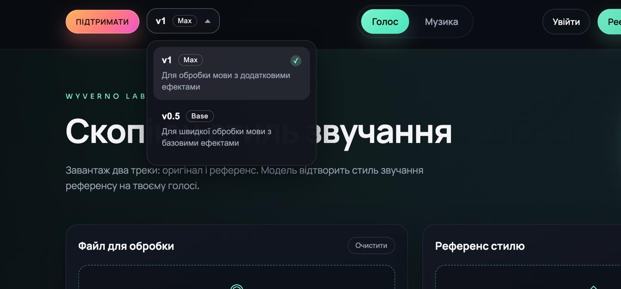 У Wyverno Lab доступні два типи моделей, залежно від типу аудіо: